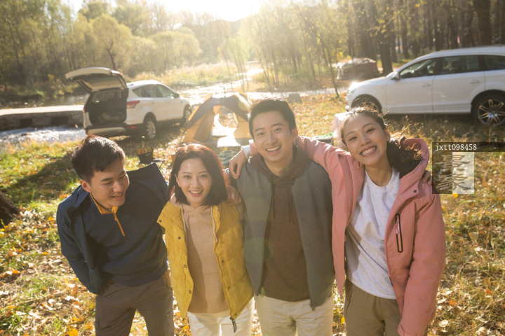 图片标题: 青年男女在户外露营