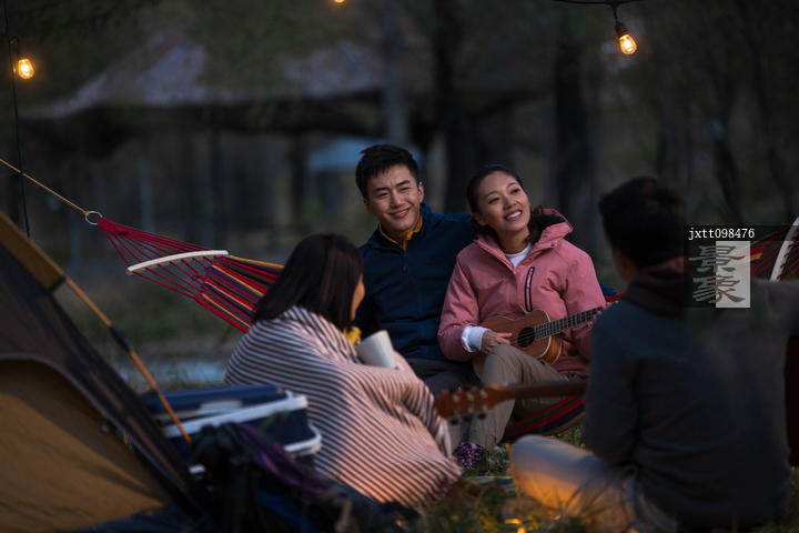 图片标题: 青年男女在户外露营