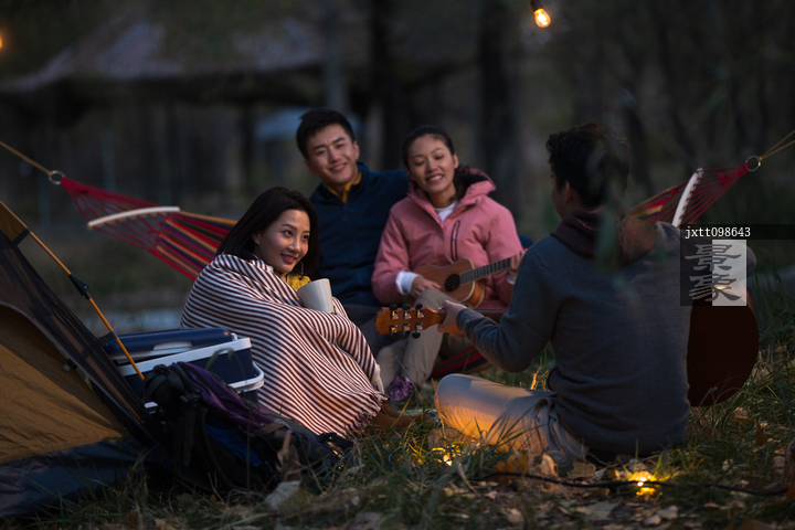 图片标题: 青年男女在户外露营