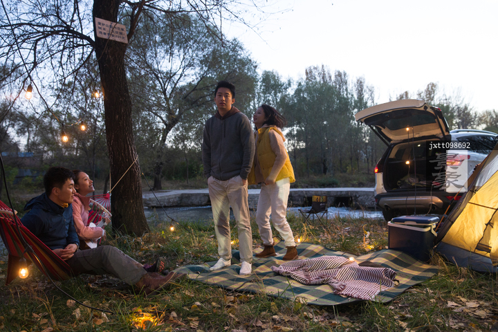 图片标题: 青年男女在户外露营