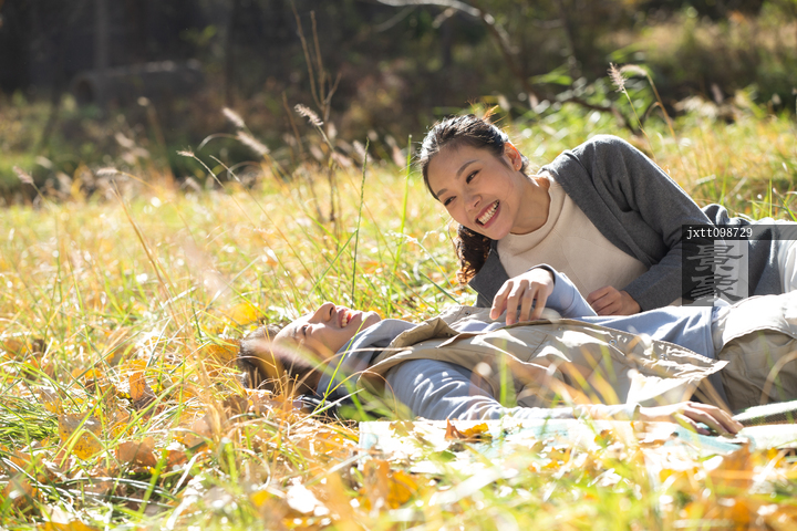 图片标题: 青年男女在户外郊游