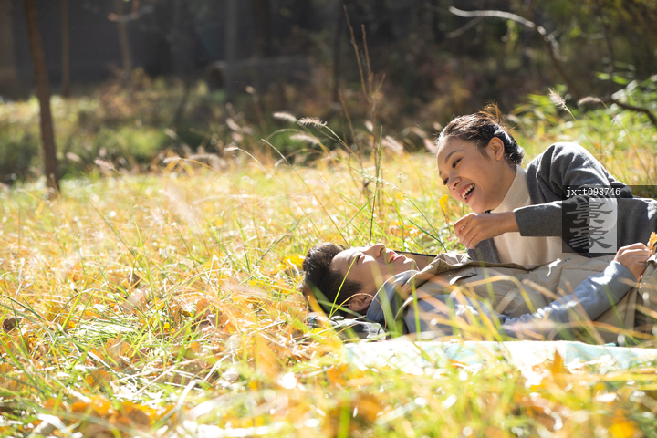图片标题: 青年男女在户外郊游