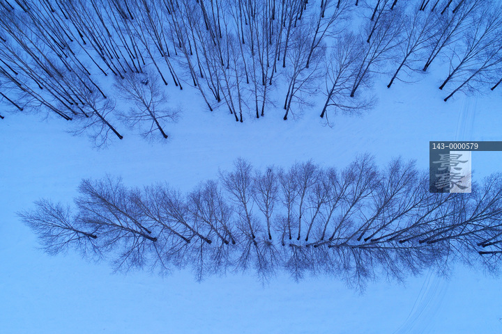 图片标题: 航拍雪原水墨树林