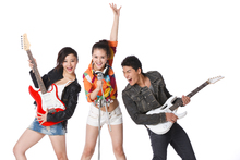 图片标题: 时尚活力的年轻人拿着话筒呼喊