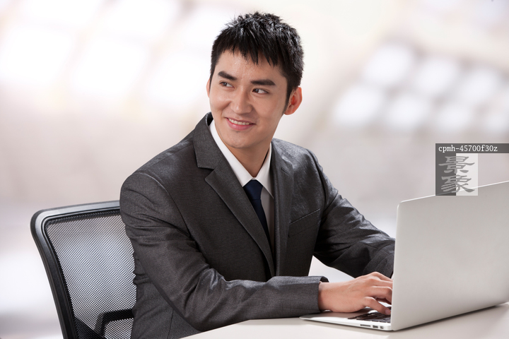 图片标题: 青年商务男士在办公室里看电脑
