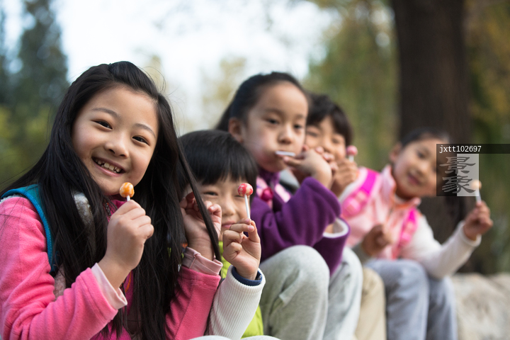 图片标题: 可爱的男孩女孩在户外玩耍