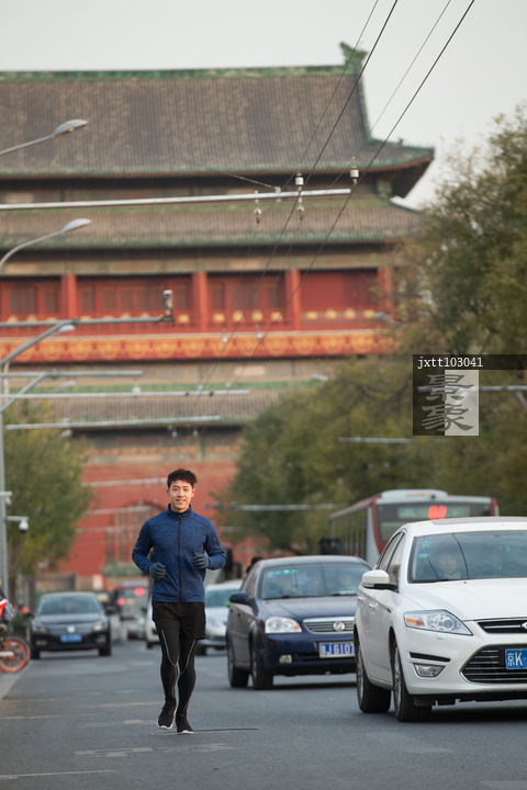 图片标题: 青年男人户外慢跑
