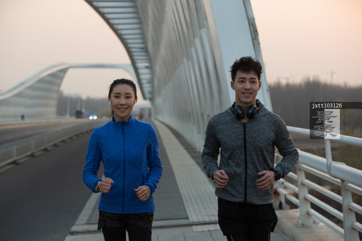 图片标题: 青年情侣户外慢跑