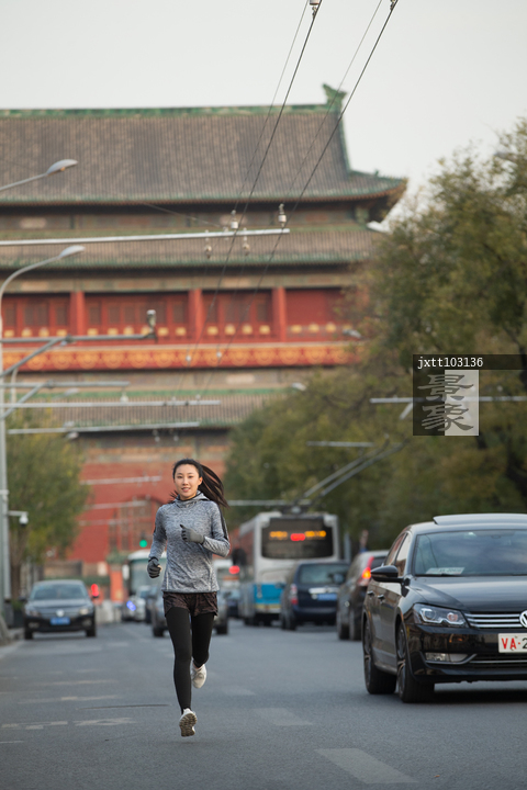 图片标题: 青年女人户外慢跑