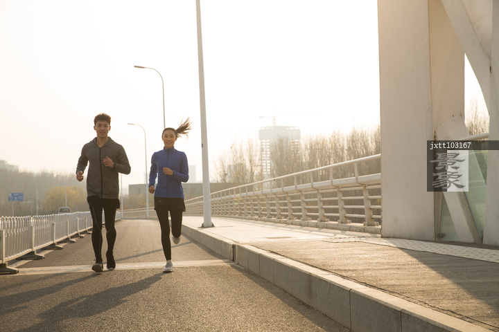 图片标题: 青年情侣户外慢跑