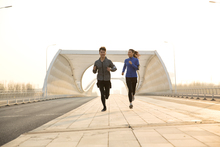 图片标题: 青年情侣户外慢跑