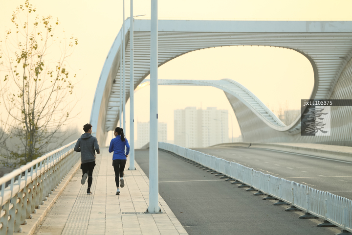 图片标题: 青年情侣户外慢跑