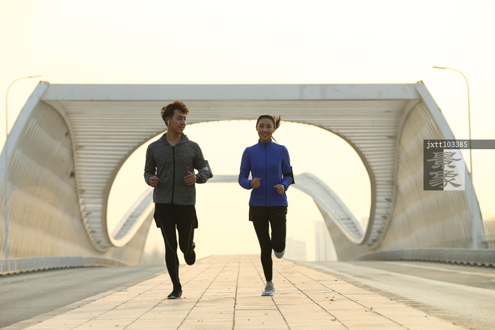 图片标题: 青年情侣户外慢跑