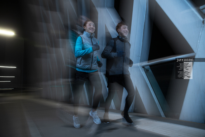 图片标题: 青年情侣户外慢跑