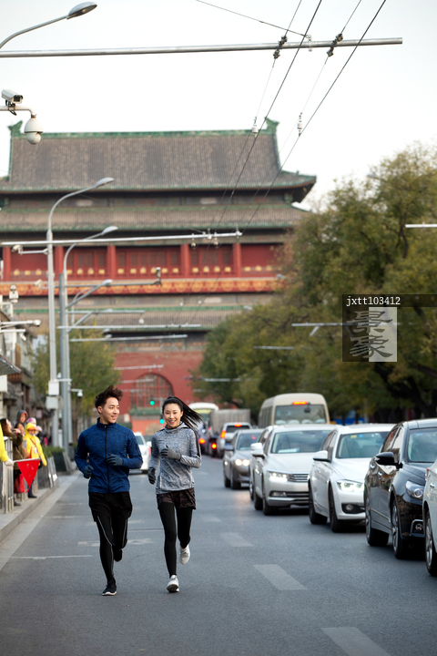 图片标题: 青年情侣户外慢跑