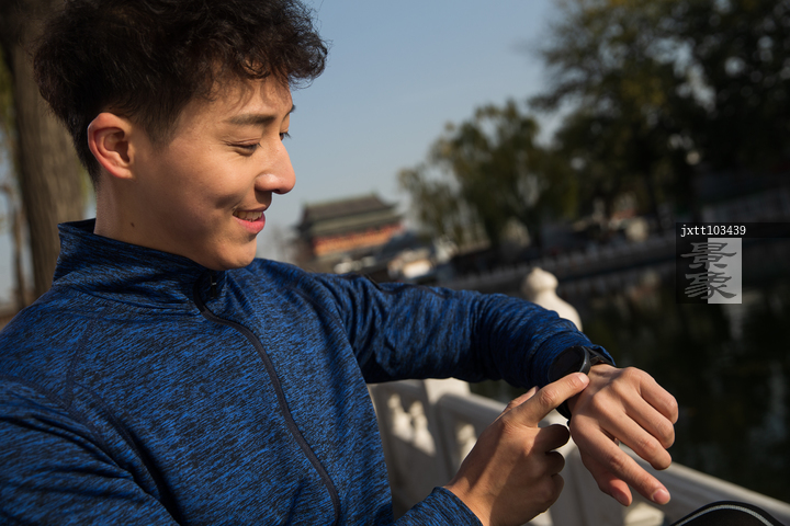 图片标题: 青年男人户外健身