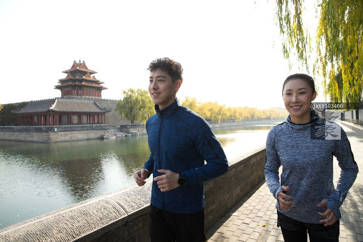 图片标题: 青年情侣户外慢跑