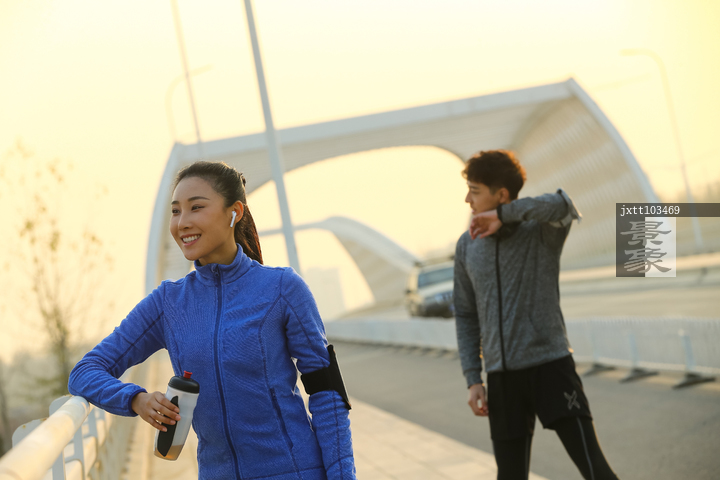 图片标题: 青年情侣户外锻炼