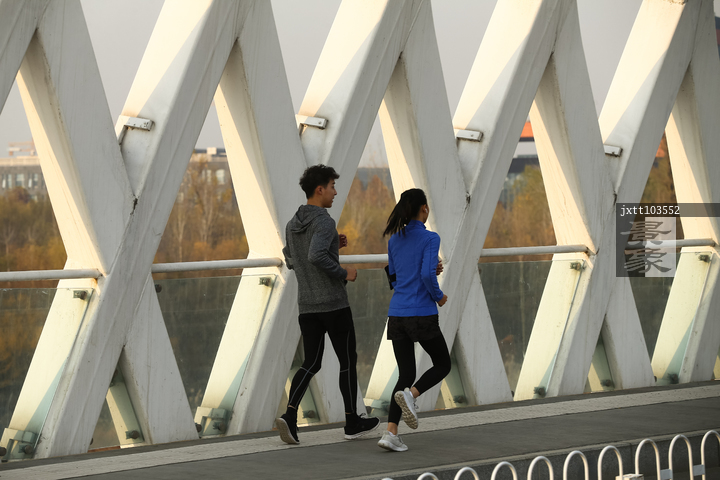 图片标题: 青年情侣户外慢跑