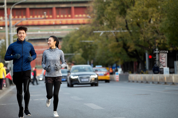 图片标题: 青年情侣户外慢跑
