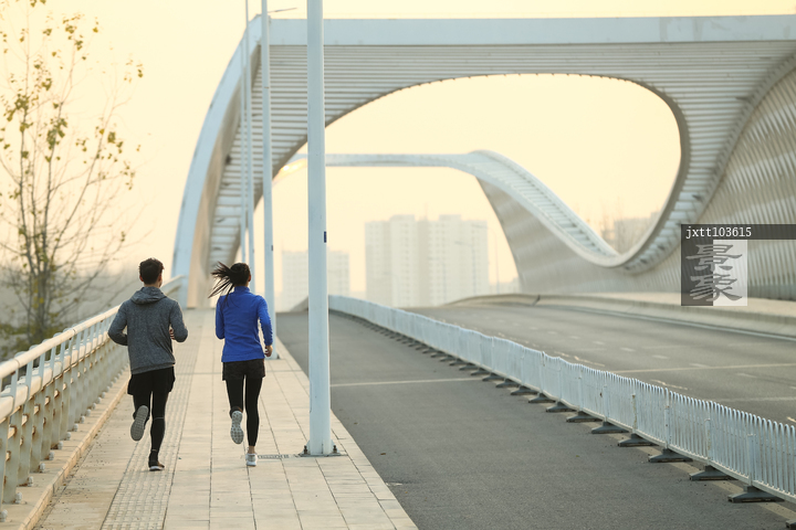 图片标题: 青年情侣户外慢跑