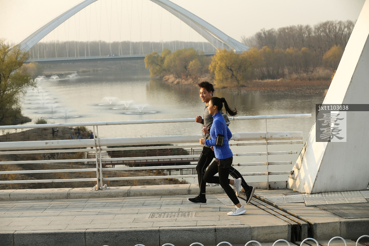 图片标题: 青年情侣户外慢跑