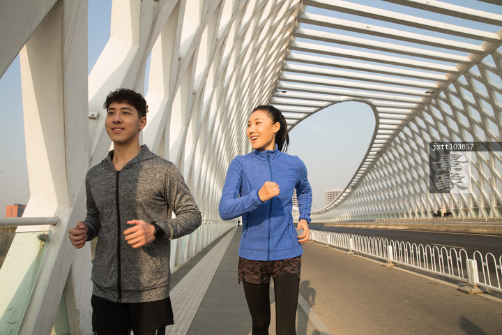 图片标题: 青年情侣户外慢跑