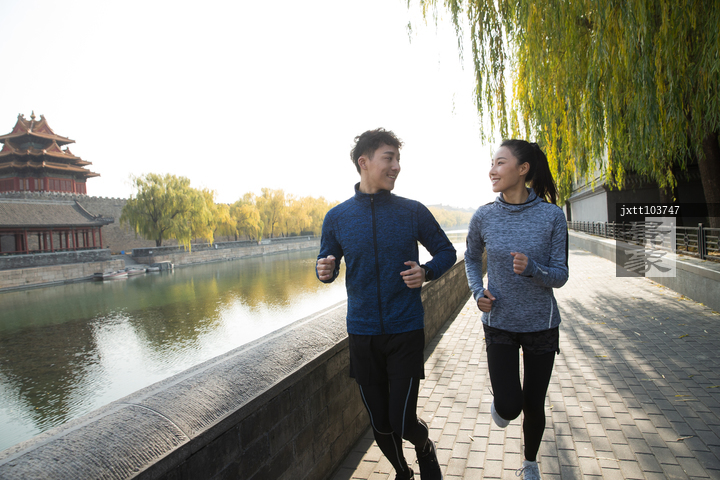 图片标题: 青年情侣户外慢跑