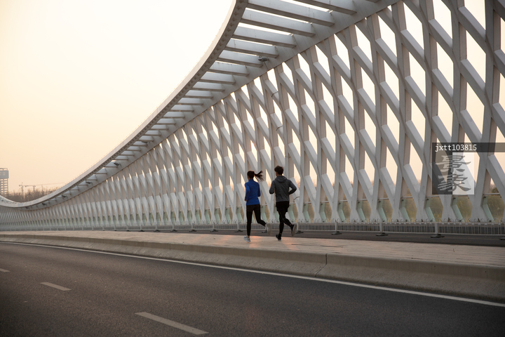 图片标题: 青年情侣户外慢跑