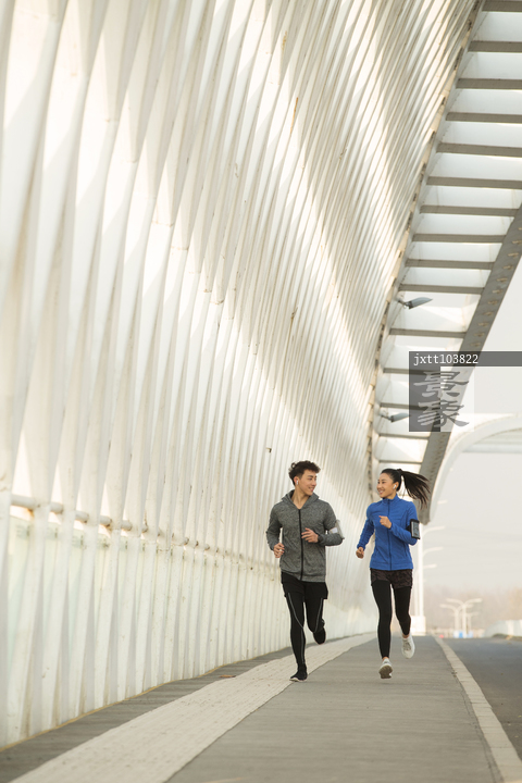 图片标题: 青年情侣户外慢跑