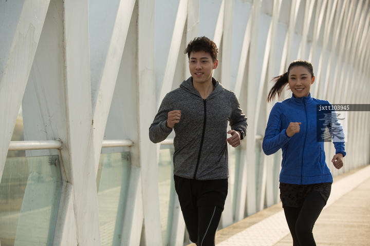 图片标题: 青年情侣户外慢跑