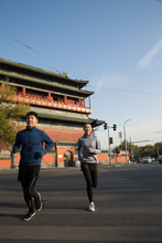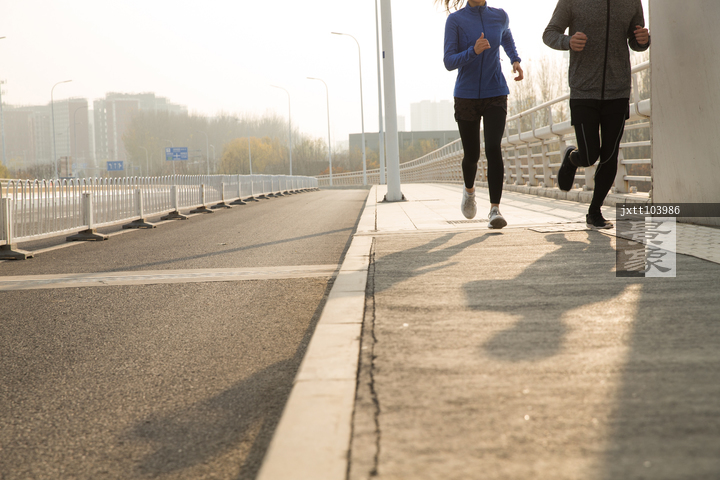 图片标题: 青年情侣户外慢跑