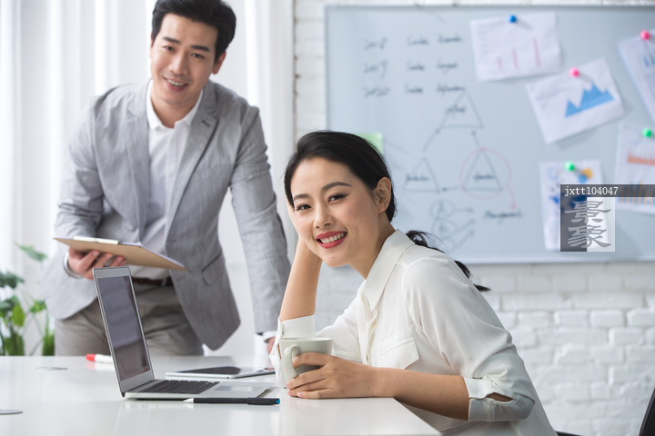 图片标题: 青年商务男女在办公