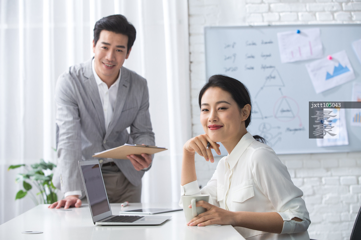 图片标题: 青年商务男女在办公