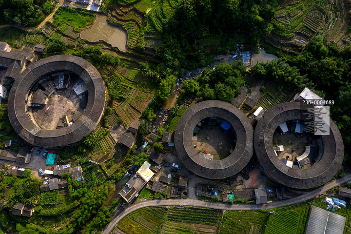 图片标题: 航拍福建省南靖土楼