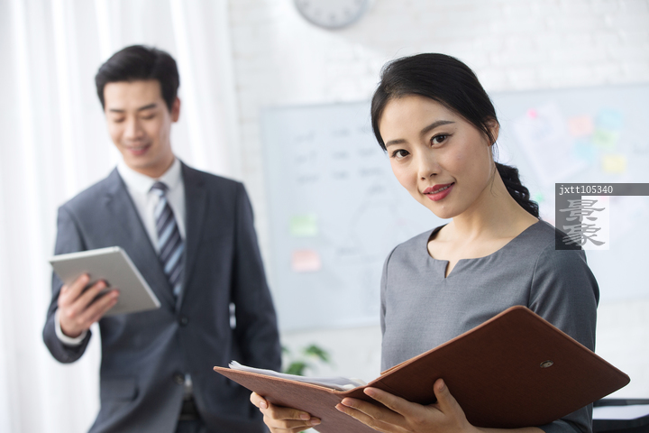 图片标题: 青年商务男女在办公