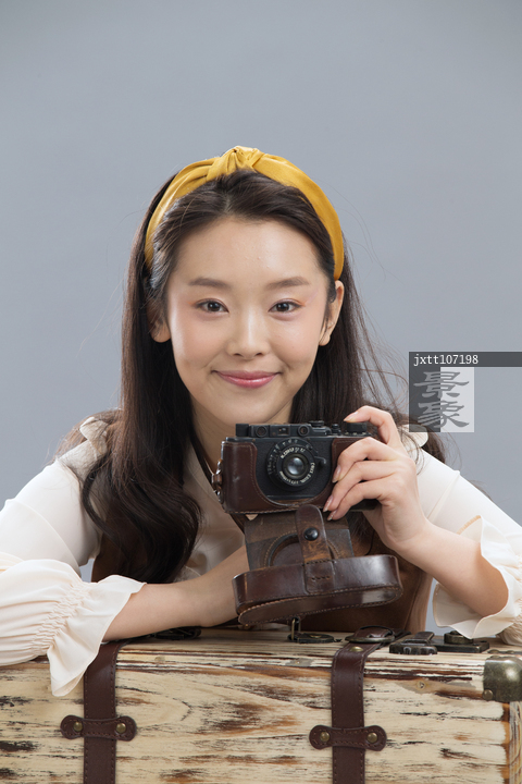 图片标题: 年轻女孩旅行拍照
