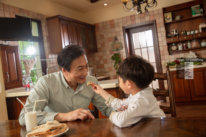 图片标题: 爷爷看着孙子吃饭
