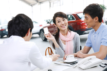 图片标题: 青年夫妇在4S店购买汽车