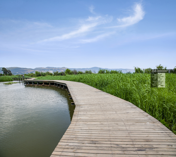 图片标题: 云南玉溪抚仙湖月亮湾湿地公园栈道