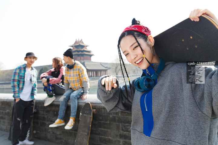 图片标题: 玩滑板的年轻人
