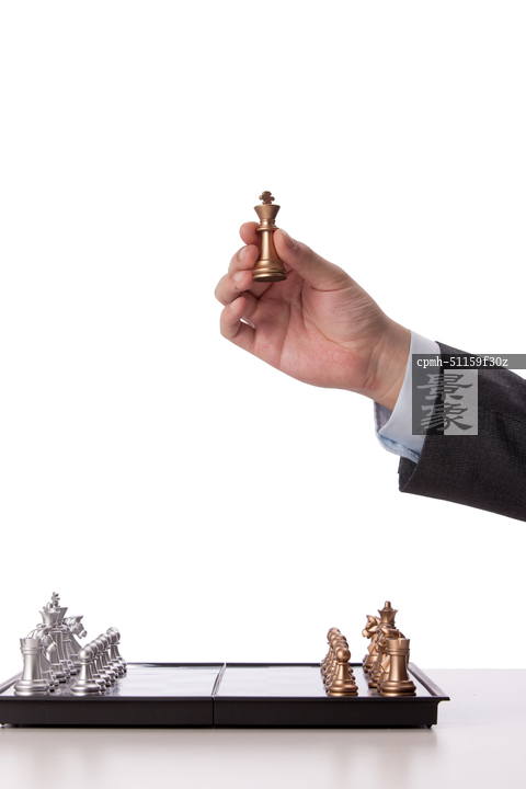 图片标题: 商务男人拿着国际象棋