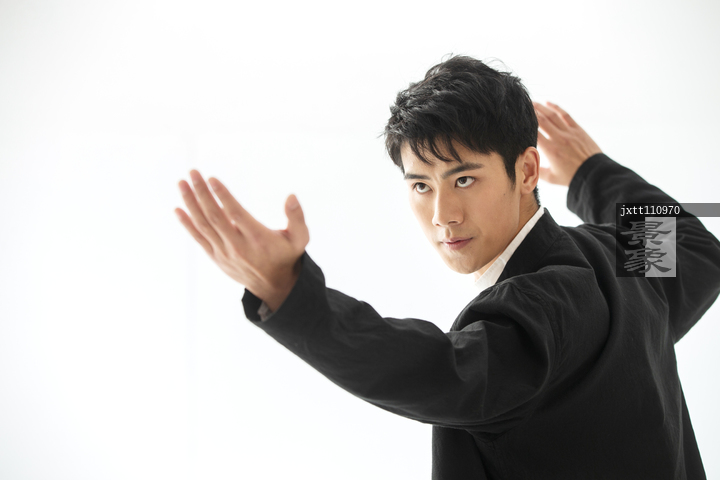 图片标题: 练武术的青年男人
