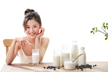图片标题: 青年女人喝牛奶
