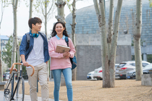 图片标题: 青年女大学生在校园里学习