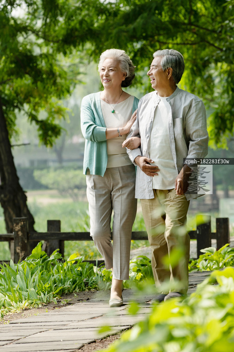 图片标题: 老年夫妇在公园里散步