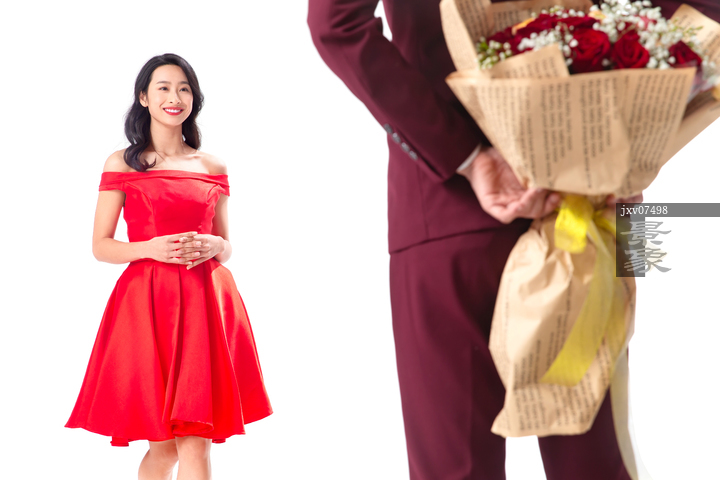 图片标题: 青年男人给女朋友送玫瑰花