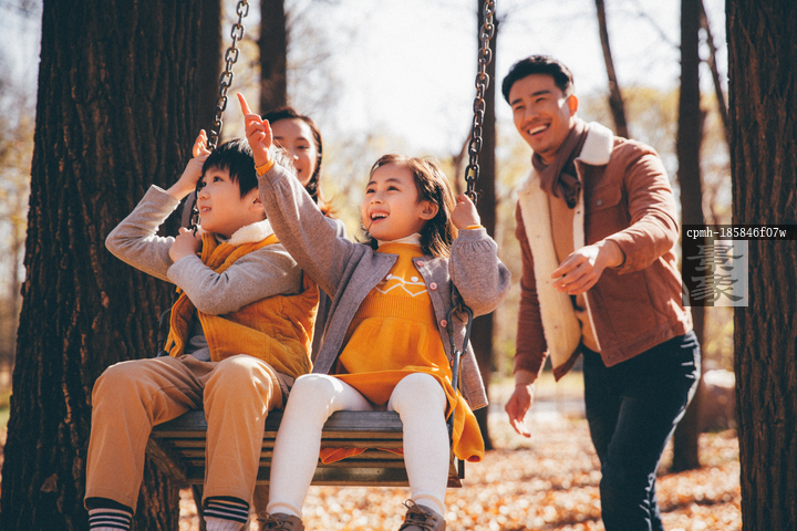 图片标题: 幸福家庭在户外荡秋千
