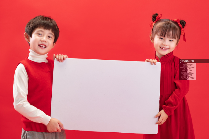 图片标题: 两个小朋友拿着白板