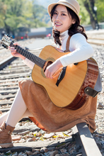 图片标题: 青年女人走在铁轨上